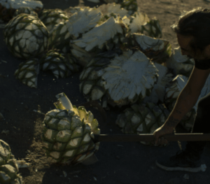 Después de que alcanzan su edad de crecimiento óptima, nuestros agaves se cosechan para posteriormente cortar y separar las pencas (jima) de las plantas maduras de agave, quedándonos solamente con el corazón de la planta (piñas).